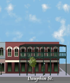 Move mouse over buildings, if name lights up click to visit. Click on arrows to navigate up and down Dauphin St.